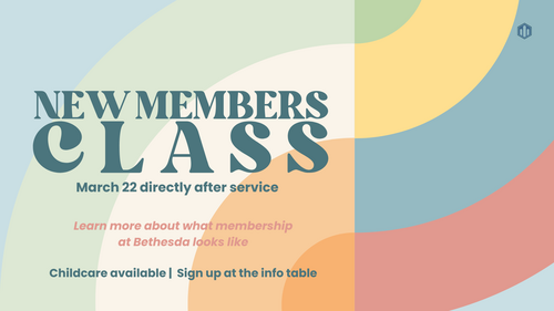 Want to discover more about membership at Bethesda? This class is for you! Learn about membership - what it means, what it looks like, and how to get started - at the New Members Class, March 22 directly after service! Lunch and childcare are provided.